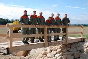 Afin de permettre ensuite aux promeneurs de le traverser, un pont a été réalisé par la Protection civile. Cinq pionniers de la Protection civile ont travaillé durant trois jours complets.. Il aura fallu découper, mesurer, percer, visser afin de réaliser ce pont destiné aux piétons, vélos, chevaux, et autres promeneurs.