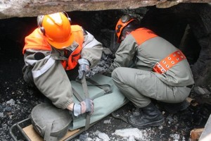 Alors que 4 astreints de la section « Assitance » jouent les grands blessés sous les décombres, une vingtaine de pionniers répartis en 3 groupes s’affairent à manipuler tronçonneuses, marteaux piqueurs et coussins de levage permettant de soulever les décombres afin d’accéder aux personnes bloquées sous les gravats.
